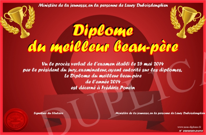 Envoyez par email votre Diplôme du meilleur beau-père personalisé
