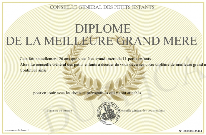 Envoyez par email votre diplôme de la meilleure grand mère personalisé