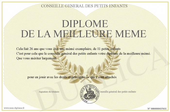Envoyez par email votre Diplôme de la meilleure Mémé personalisé