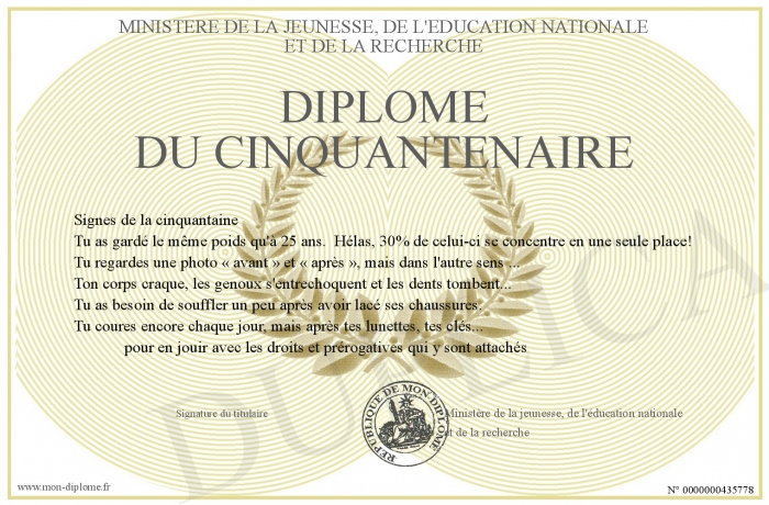 Envoyez par email votre Diplôme du Cinquantenaire personalisé