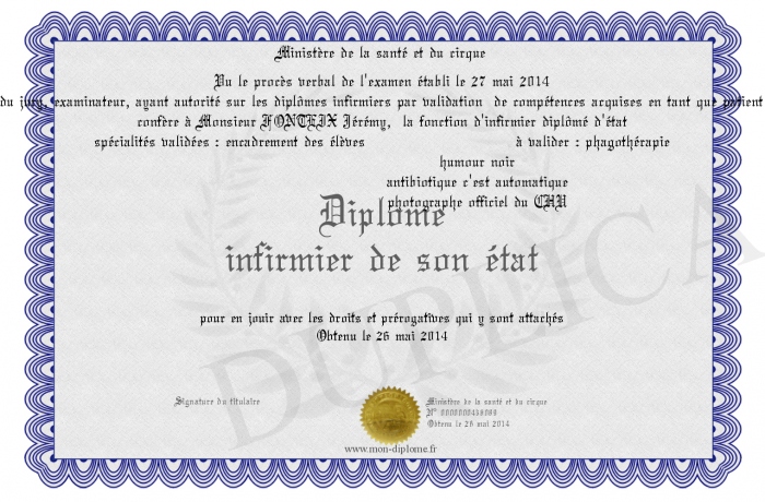 Envoyez par email votre Diplôme infirmier de son état personalisé
