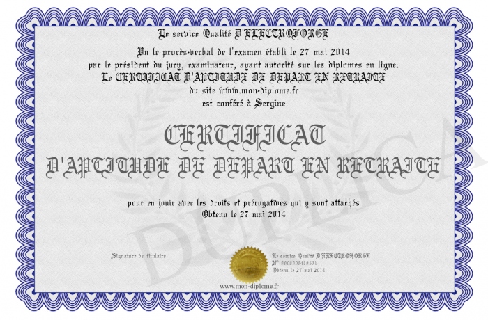 Envoyez par email votre CERTIFICAT D'APTITUDE DE DEPART EN RETRAITE personalisé