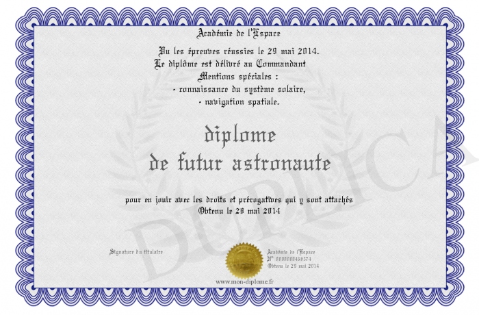 Envoyez par email votre diplôme de futur astronaute personalisé