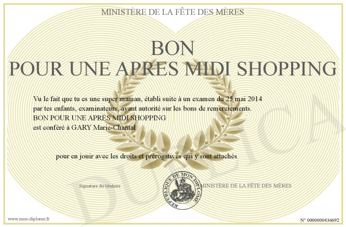 Envoyez par email votre Bon pour une après midi shopping personalisé