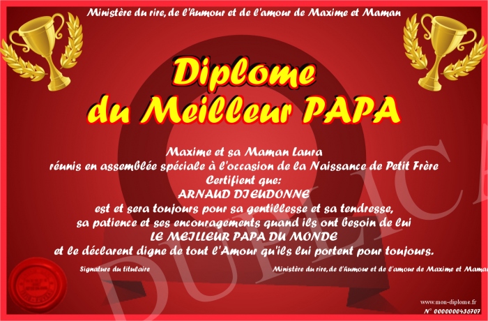 Envoyez par email votre Diplôme du Meilleur PAPA personalisé