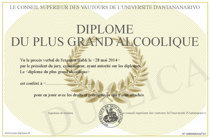 Envoyez par email votre Diplôme du plus grand alcoolique personalisé