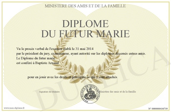 Envoyez par email votre Diplôme du futur marié personalisé