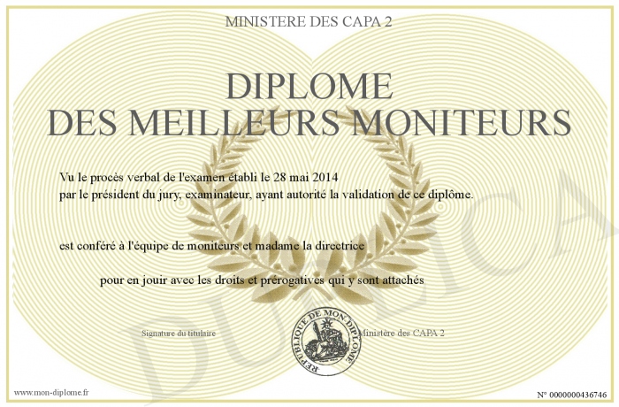Envoyez par email votre Diplôme des meilleurs moniteurs personalisé