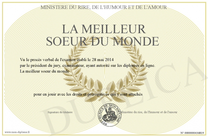 Envoyez par email votre la meilleur soeur du monde personalisé