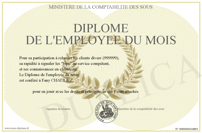Envoyez par email votre Diplôme de l'employée du mois personalisé