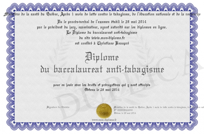 Envoyez par email votre Diplôme du baccalaureat anti-tabagisme personalisé