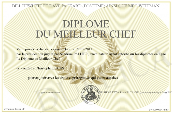 Envoyez par email votre Diplôme du Meilleur Chef personalisé