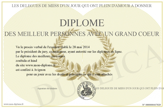 Envoyez par email votre Diplome des meilleur personneS avec un GRAND coeur personalisé