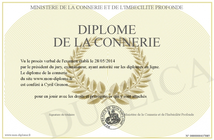 envoyé par le Ministère de la Connerie et de l'Imbécilité Profonde !