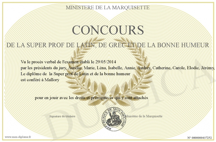 Envoyez par email votre Concours de la Super prof de Latin, de grec et de la bonne humeur personalisé