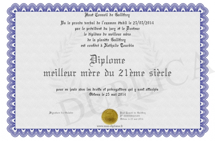 Envoyez par email votre Diplôme meilleur mère du 21ème siècle personalisé