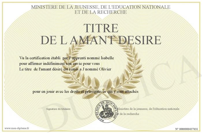 Envoyez par email votre TITRE DE L AMANT DESIRE personalisé