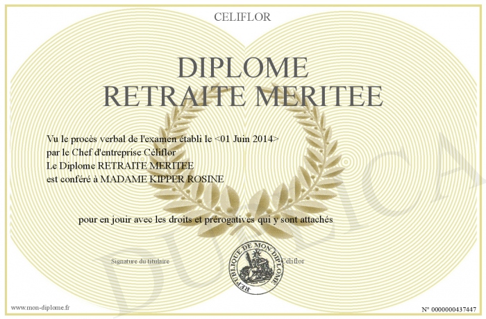 Envoyez par email votre Diplôme RETRAITE MERITEE personalisé