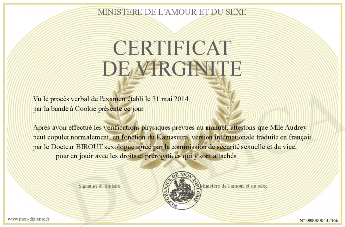 Envoyez par email votre Certificat de virginité personalisé
