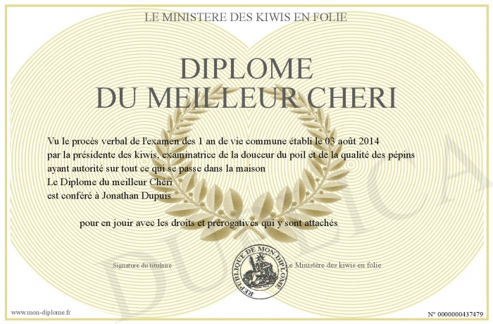 Envoyez par email votre Diplôme du meilleur Chéri personalisé