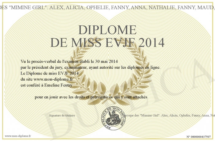 Envoyez par email votre Diplôme de miss EVJF 2014 personalisé