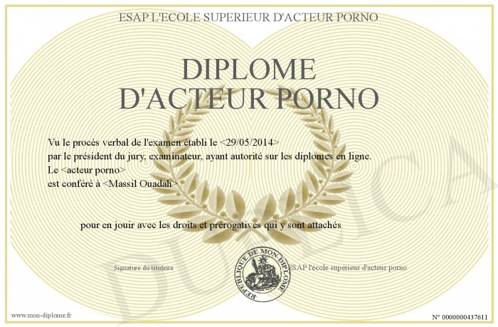 Envoyez par email votre Diplôme d'acteur porno personalisé