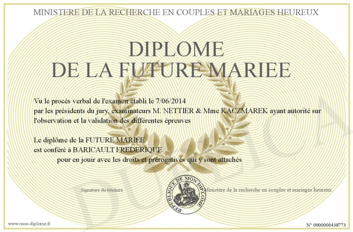 Envoyez par email votre Diplôme de la Future mariée personalisé