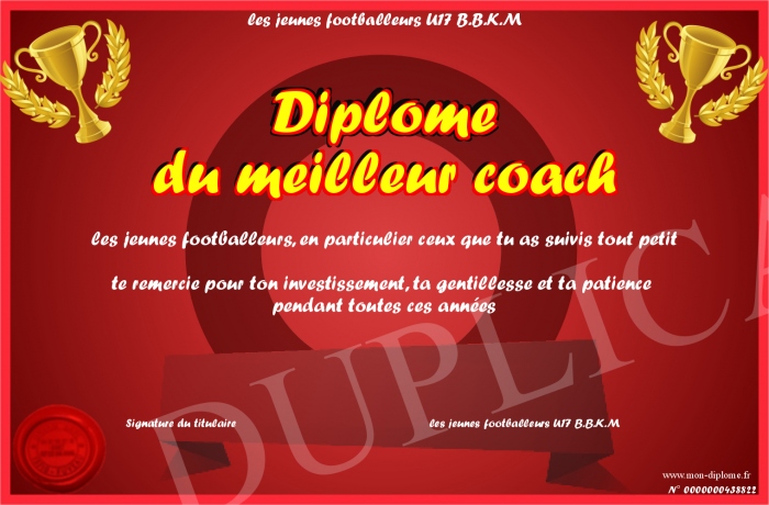 Envoyez par email votre Diplôme du meilleur coach personalisé