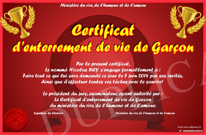 Envoyez par email votre Certificat d'enterrement de vie de Garçon personalisé