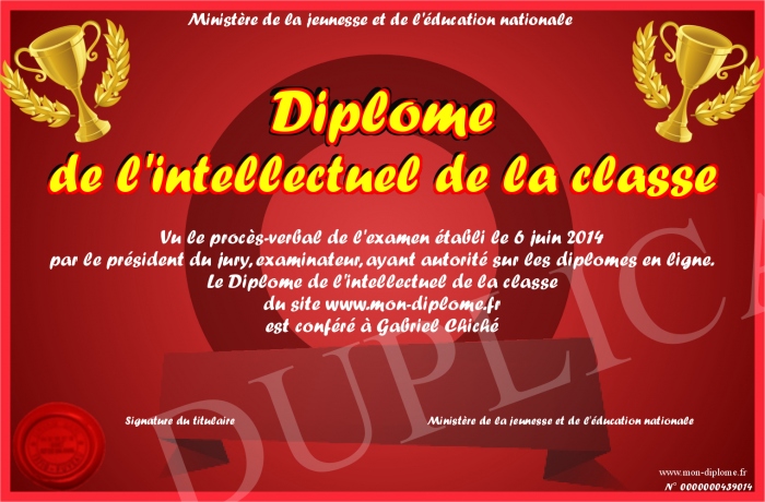 Envoyez par email votre Diplôme de l'intellectuel de la classe personalisé