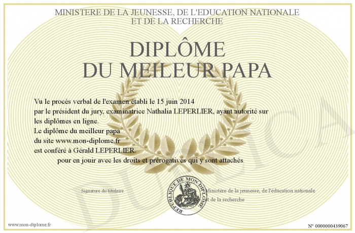 Envoyez par email votre DIPLÔME DU MEILEUR PAPA personalisé