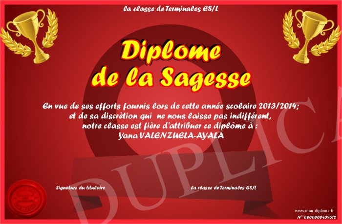 Envoyez par email votre Diplôme de la Sagesse personalisé