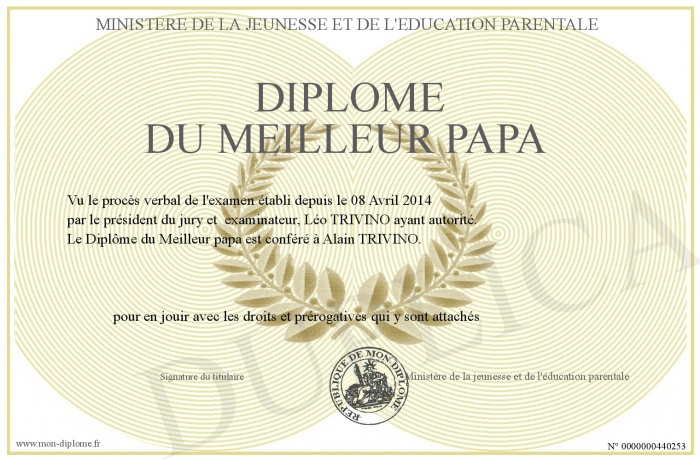 Envoyez par email votre Diplôme du Meilleur papa personalisé