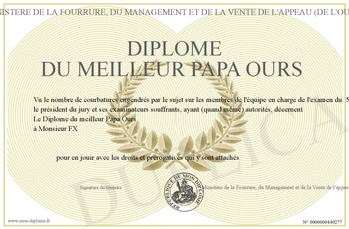 Envoyez par email votre Diplôme du meilleur Papa Ours personalisé