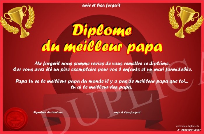 Envoyez par email votre Diplôme du meilleur papa personalisé