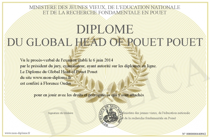 Envoyez par email votre Diplôme du Global Head of Pouet Pouet personalisé
