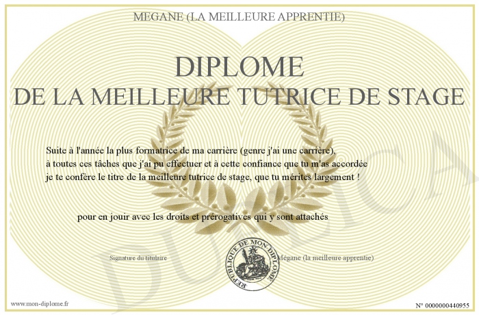 Envoyez par email votre Diplôme de la meilleure tutrice de stage personalisé