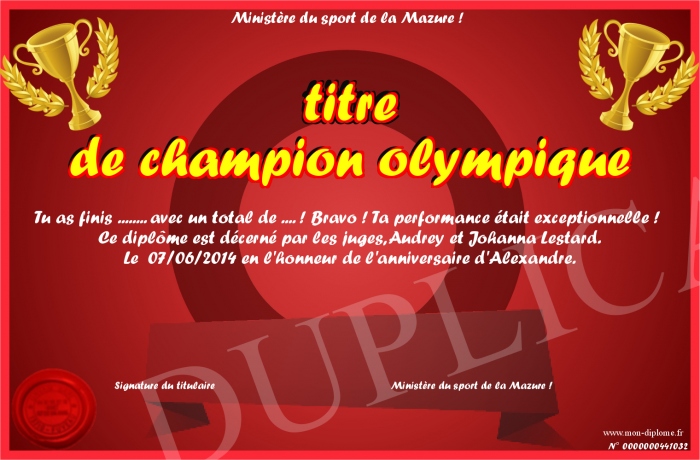 Envoyez par email votre titre de champion olympique personalisé