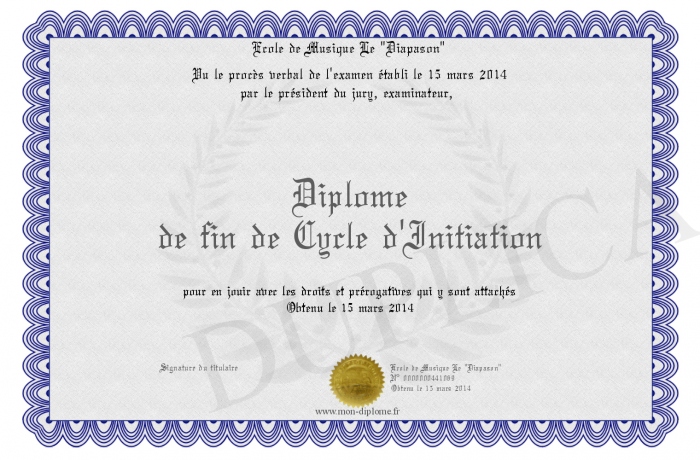 Envoyez par email votre Diplôme de fin de Cycle d'Initiation personalisé
