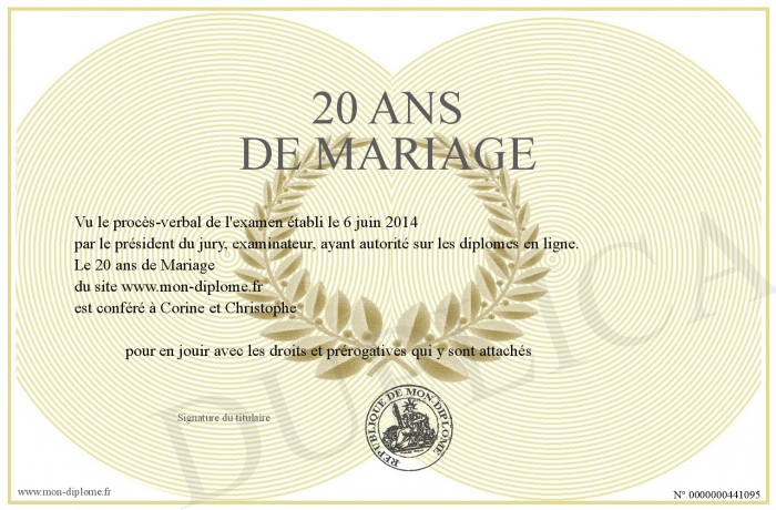 Envoyez par email votre 20 ans de Mariage personalisé