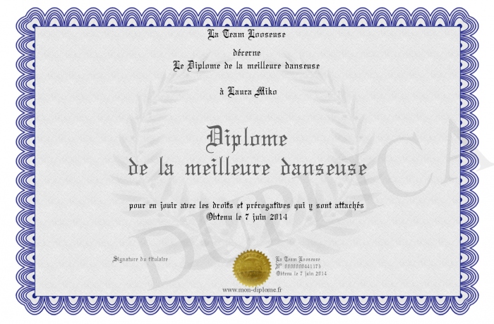 Envoyez par email votre Diplôme de la meilleure danseuse personalisé