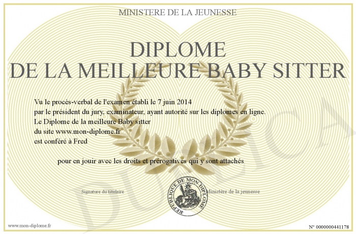 Envoyez par email votre Diplôme de la meilleure Baby sitter personalisé