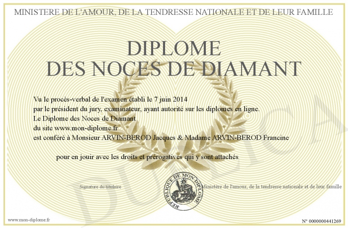 Envoyez par email votre Diplôme des Noces de Diamant personalisé