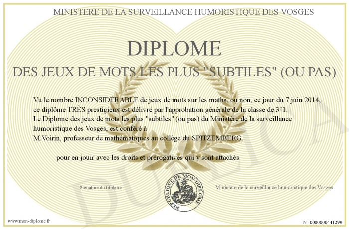 Envoyez par email votre Diplôme des jeux de mots les plus -subtiles- (ou pas) personalisé