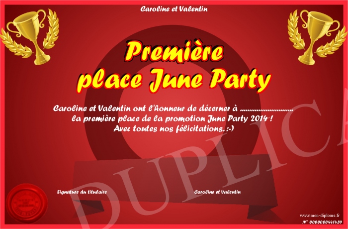 Envoyez par email votre Première place June Party personalisé