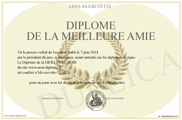Envoyez par email votre Diplôme de la MEILLEURE AMIE personalisé