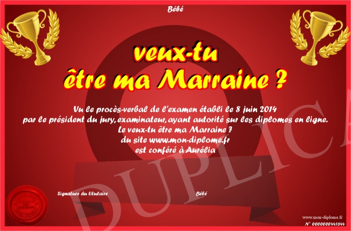 Envoyez par email votre veux-tu être ma Marraine ? personalisé