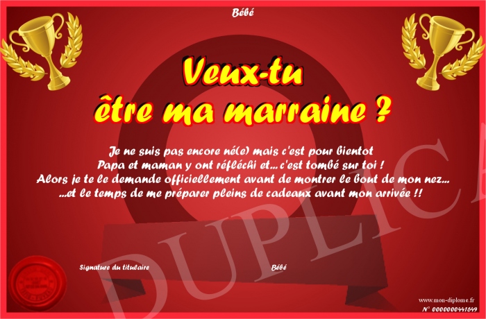 Envoyez par email votre Veux-tu être ma marraine ? personalisé