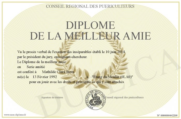 Envoyez par email votre Diplôme de la meilleur amie personalisé