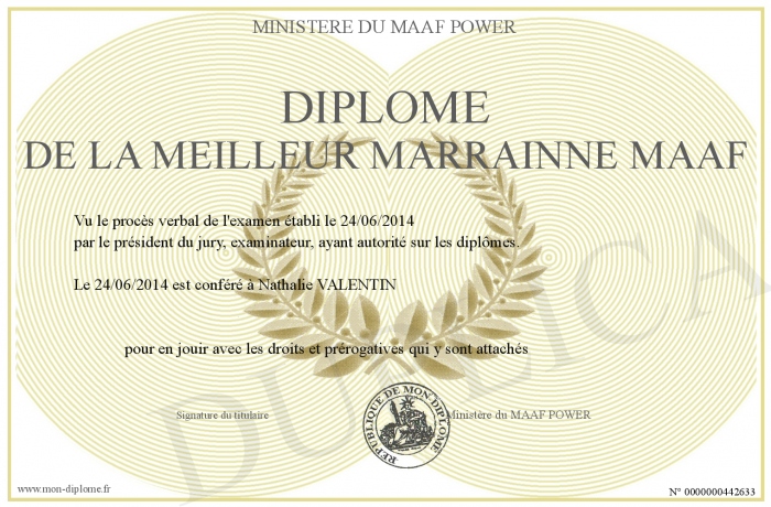 Envoyez par email votre Diplôme de la meilleur marrainne MAAF personalisé